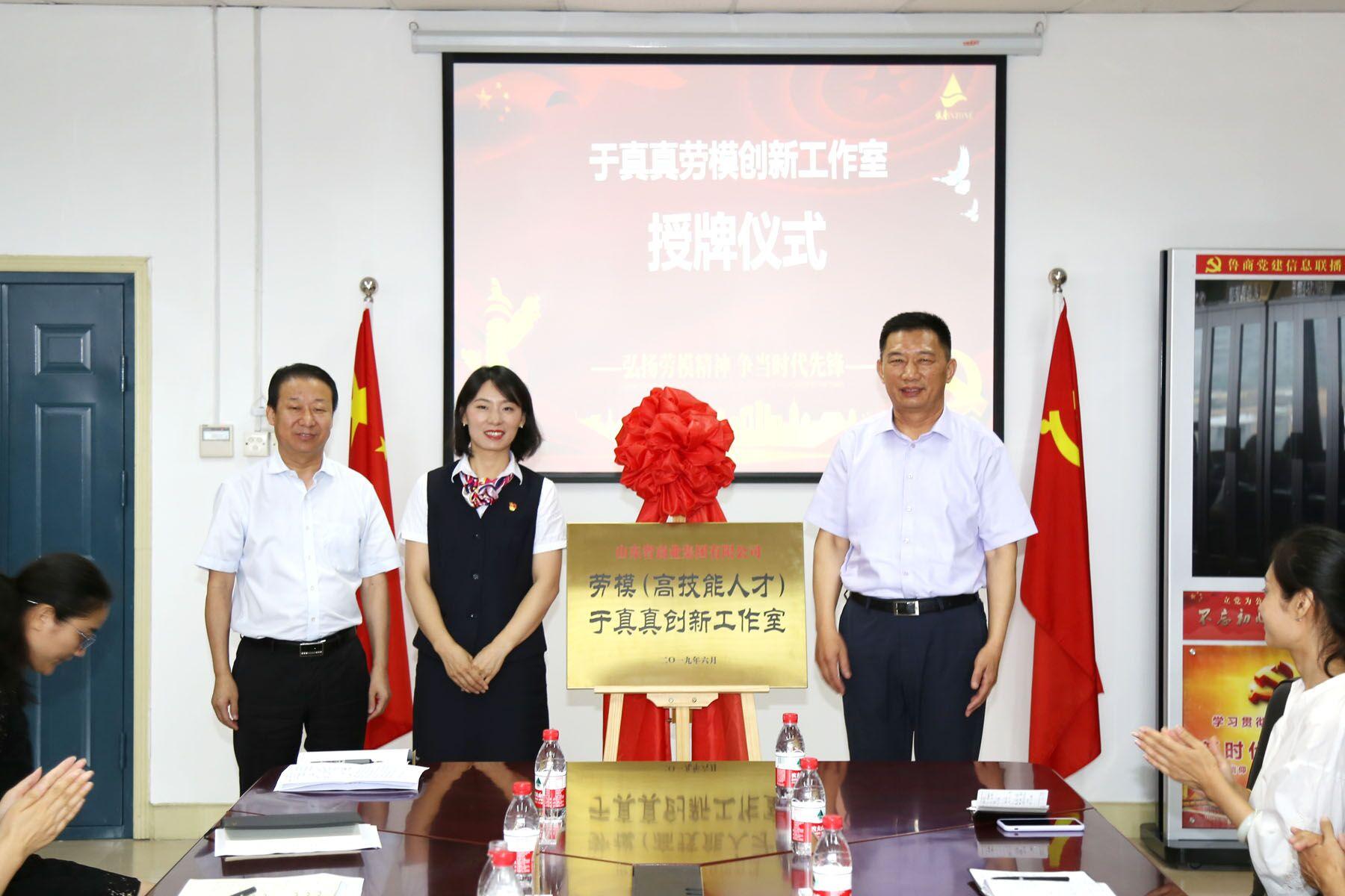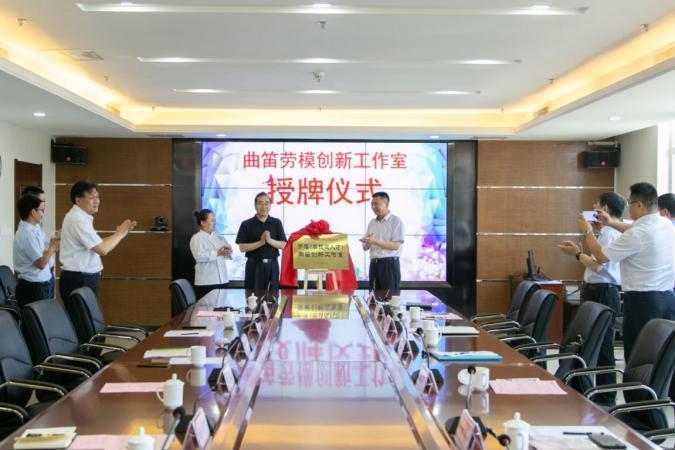 7月8日在城市學(xué)院,李香軍與學(xué)院黨委書記宋寧共同為“勞模(高技能人才)曲笛創(chuàng)新工作室”揭牌。曲笛作為城市學(xué)院的優(yōu)秀年輕教師代表,在世界技能大賽上屢創(chuàng)佳績(jī),曾受到國(guó)務(wù)院總理李克強(qiáng),山東省委副書記、省長(zhǎng)龔正分別接見。