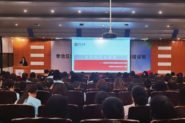 中國銀行青島嶗山支行相關(guān)負責人、青島酒店學(xué)院師生代表400余人參加講座。