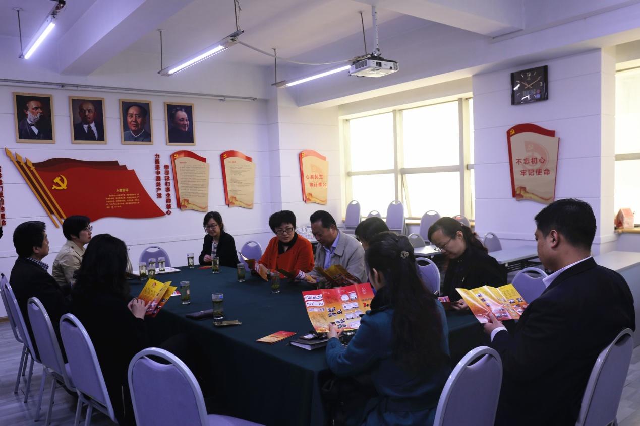 在嶗山區金嶺管區服務中心,考察組成員仔細聆聽了社區黨建工作經驗介紹,參觀了社區黨員活動室,重點學習了社區在黨員活動陣地建設、黨員示范崗和黨建品牌創建方面的成熟經驗,并就學校與街道黨建工作對接共建進行了交流。