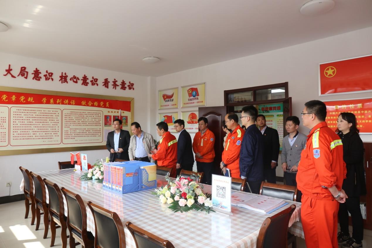 在青島港,考察組走進大港分公司固機大隊班組黨團活動室、班組實作培訓室、主管工作室和班組學習室,詳細了解并學習了黨建工作建設開展和企業文化建設情況。
