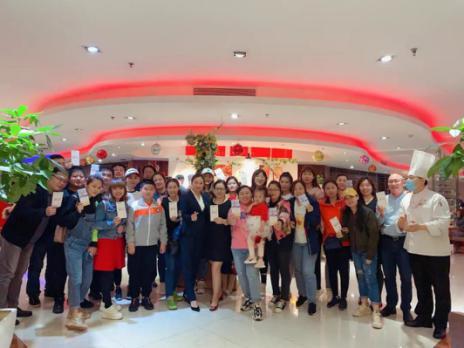 上善坊主管吳永菲得知三家醫(yī)院工作人員將前往佳悅酒店就餐后,緊急組織服務(wù)人員準(zhǔn)備互動(dòng)節(jié)目致敬白衣天使。有醫(yī)生感動(dòng)地說,“進(jìn)店之后感受到了酒店工作人員的熱情服務(wù),心里暖暖的”。