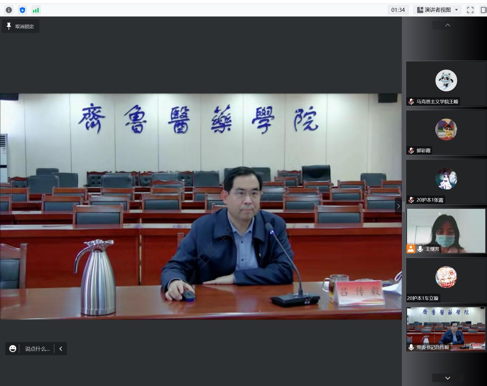 12月15日,齊魯醫藥學院黨委書記呂傳毅走進思政線上課堂,為學生講授思政課。