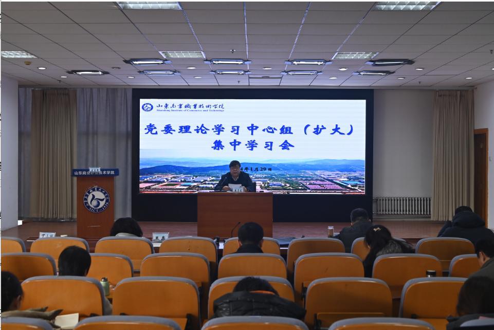 山東商職學(xué)院黨委理論學(xué)習(xí)中心組成員參加學(xué)習(xí)會(huì),中層正職領(lǐng)導(dǎo)干部列席會(huì)議。